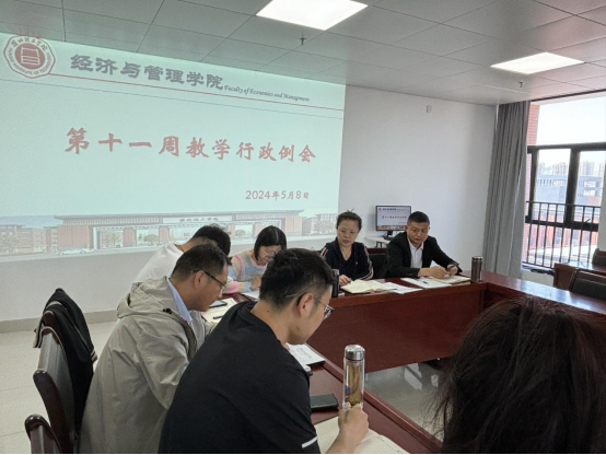 2024年5月8日下午,bat365正版唯一官网在行政楼725会议室召开bat365正版唯一官网第十一周工作例会,院长吴玲主持会议,副院长秦品德、院长助理张珊以及全体教师参会。