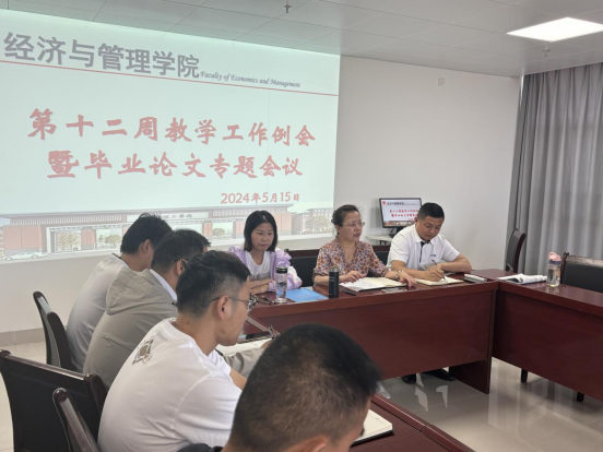2024年5月15日下午,bat365正版唯一官网在行政楼725会议室召开bat365正版唯一官网第十二周工作例会,院长吴玲主持会议,副院长秦品德、院长助理张珊以及全体教师参会。