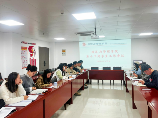 2024年11月19日,bat365正版唯一官网在行政楼725会议室召开本学期第十二周学生管理工作例会,学院书记助理叶赵强、团总支书记员禹辛及全体辅导员参会,会议由吴玲院长主持。