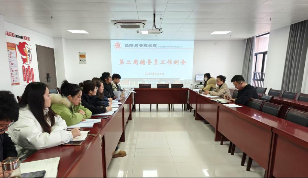 2025年3月4日,bat365正版唯一官网在行政楼725会议室召开了本学期开学第二周的学生管理工作例会。学院书记助理员禹辛、团总支书记王绎程及全体辅导员参会,会议由院长吴玲主持。