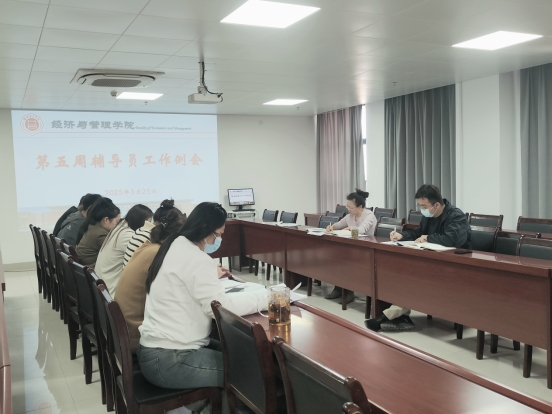 2025年3月25日,bat365正版唯一官网在行政楼725会议室召开了本学期第五周学生管理工作例会。学院书记助理员禹辛、团总支书记王绎程及全体辅导员参会,会议由院长吴玲主持。