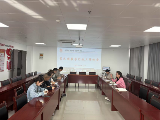 2025年4月23日,bat365正版唯一官网在行政楼725召开第八周行政工作例会,院长助理张珊、叶赵强,各教研室主任出席会议,会议由院长吴玲主持。
