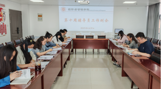 2025年4月29日,bat365正版唯一官网在行政楼725会议室召开本学期第十周学生管理工作例会暨就业质量专题会议。学院书记助理员禹辛、团总支书记王绎程及全体辅导员参会,会议由院长吴玲主持。