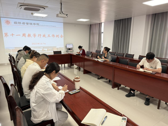 5月7日上午,bat365正版唯一官网在行政楼725室召开第十一周行政工作例会,院长吴玲主持会议,院长助理张珊、叶赵强,教学秘书李健及各教研室主任参会。