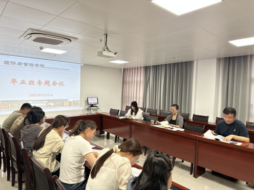 2025年5月13日上午,bat365正版唯一官网于行政楼725会议室召开本学期第十二周学生管理工作例会暨毕业班及学生管理工作专题会议。学院书记助理员禹辛、团总支书记王绎程及全体辅导员参会,会议由院长吴玲主持。