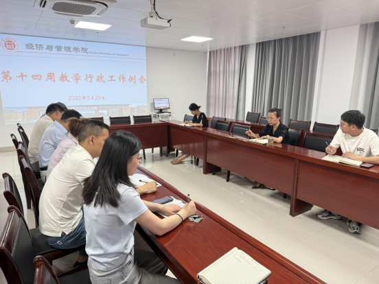 5月28日上午,bat365正版唯一官网在行政楼725室召开第十三周行政例会,院长吴玲主持,院长助理张珊、叶赵强,教学秘书李健及各教研室主任参会。