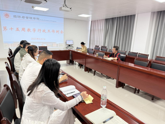 2025年6月4日上午,bat365正版唯一官网在行政楼725会议室召开第十五周行政工作例会,院长助理张珊、实训室主任李健及各教研室主任参会,会议由院长吴玲主持。