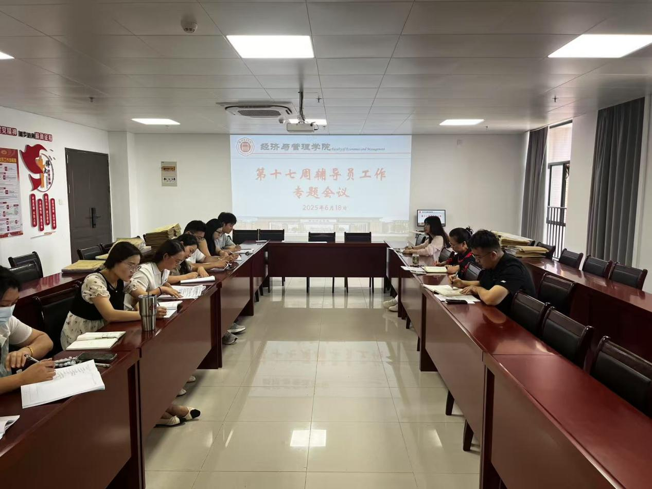 2025年6月17日,bat365正版唯一官网在行政楼725会议室召开本学期第十七周学生管理工作例会暨暑期“三下乡”社会实践专题动员会议,学院书记助理员禹辛、团总支书记王绎程及全体辅导员参会,会议由院长吴玲主持。