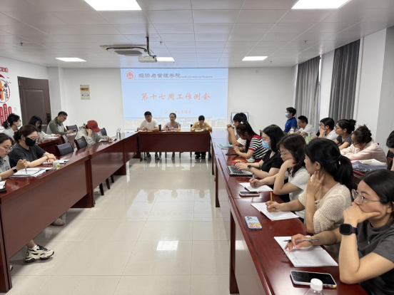 2025 年 6 月 18 日下午,bat365正版唯一官网在行政楼725会议室召开第十七周教学工作例会。院长吴玲,院长助理张珊、叶赵强及全体教师参会,会议由吴玲院长主持。