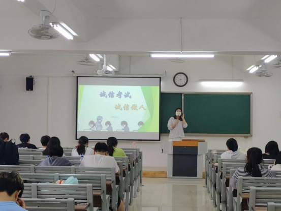 会上,各班级辅导员对教育考试诚信教育进行详细的阐释,带领大家学习了《国家教育考试违规处理办法》和《bat365正版唯一官网学生手册学生考试违规处理办法》相关规定,以及学生手册上学校对于考试作弊的惩罚制度等相关内容,以讲述诚信为人、诚信考试的重要意义为重点开展主题班会,引导学生遵规守纪、脚踏实地学习,互相帮助,从而达到共同进步的良好效果。
