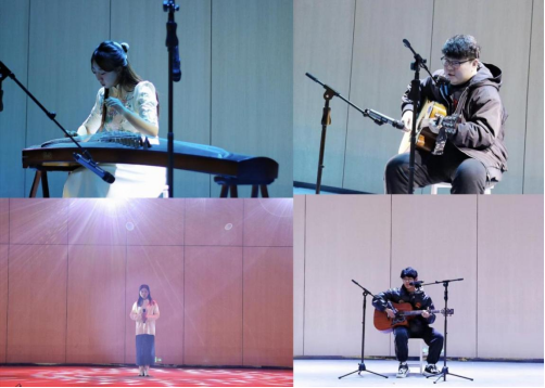 古筝独奏《战台风》、吉他弹唱《其实都没有》展现出古典音乐之美、乐器演奏之妙。朗诵《我愿意是急流》《青春中国》《致橡树》用高亢嘹亮的声音感染着每一个人,热情激荡中蕴含着沉思,韵味十足。在《我和我的祖国》的歌声中,本届新生才艺大赛落下帷幕。