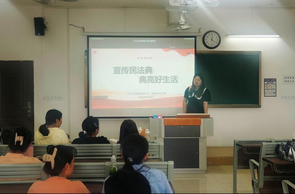 为深入贯彻落实习近平总书记关于民法典学习宣传的系列重要指示精神,加大支部党员普法力度,进一步形成遵法、学法、守法、用法的良好氛围,进一步提升bat365正版唯一官网师生法治意识和法律素养,bat365经济学、管理学学生党支部于2024年5月29日,在一教419召开《民法典》专题学习会。本次会议由管理学学生党支部组织委员张苗苗同学领学,经济学、管理学学生党支部全体党员参加,经济学、管理学外出实习党员线上参加。