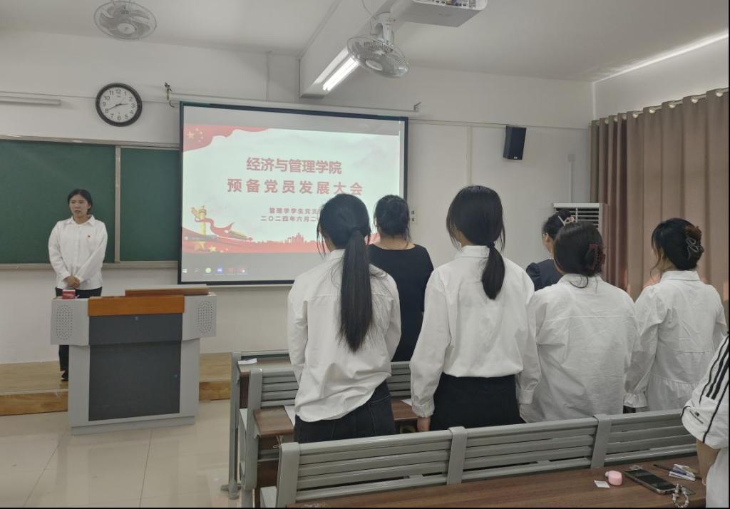 为深入贯彻党支部发展党员计划,加强党员队伍建设,bat365正版唯一官网经济学、管理学学生支部于6月26日在二教422、423教室隆重召开预备党员接收大会。此次会议由支部委员丁阳、王晓勉主持,经济学、管理学学生支部全体党员共襄盛举。