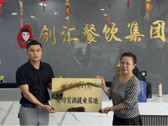 在访企拓岗期间,吴玲一行又来到安徽创汇餐饮集团,与集团负责人负责人郑思田就人才培养、实习实训以及学生创业和就业方面进行了深入交流,并形成了高度的共识,洽谈结束了进行了校企合作授牌。