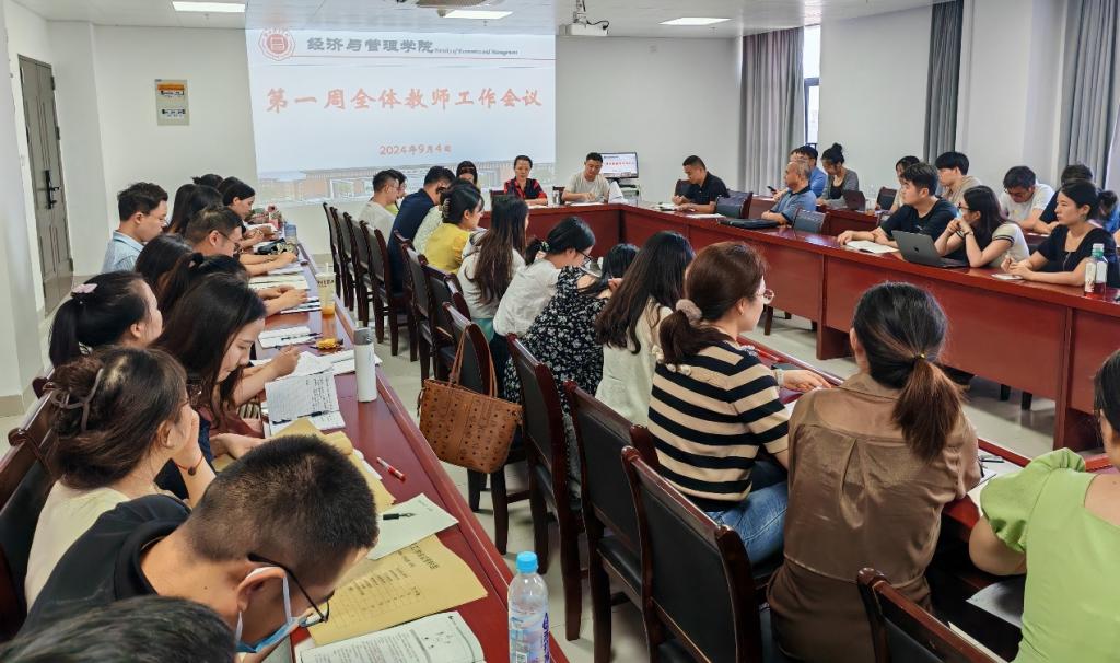 bat365正版唯一官网于2024年9月3日下午2:30分,在行政楼725会议室召开2024-2025年度第一学期第一周教学工作例会。会议由院长吴玲主持,副院长秦品德、院长助理张珊以及全体教师参加。会议共分三个阶段有序进行。