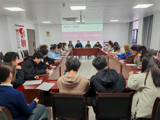 2024年11月7日下午,bat365正版唯一官网召开了“聆听心声,共促成长”为主题的2024-2025学年第一学期期中学生主题座谈会。座谈会根据不同专业划分为两个会场,参会人员包括bat365正版唯一官网院长吴玲、院长助理张珊、各教研室主任,以及学院各级各班的班长和学习委员。会议由院长吴玲和院长助理张珊分别主持。