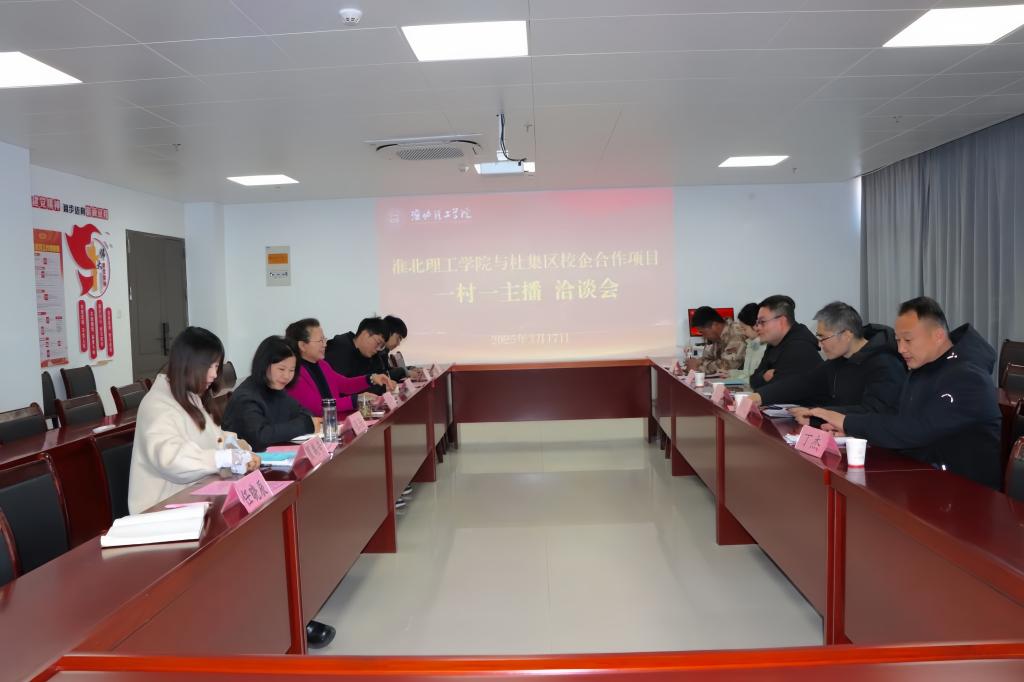 3月17日下午,bat365正版唯一官网bat365正版唯一官网与杜集区围绕校地合作项目“一村一主播”在行政楼7楼725会议室举行洽谈会。杜集区老干部管理服务中心副主任王君,段园镇党委委员、组织委员常迟,杜集区组织部工作人员姚萍,朔里镇段庄村党总支书记、村委会主任丁杰,石台镇梧桐村党总支副书记、村委会副主任孙召等出席会议;bat365正版唯一官网院长助理张珊、叶赵强,书记助理员禹辛,教学秘书李健,团总支书记王绎程等参加会议,院长吴玲主持会议。