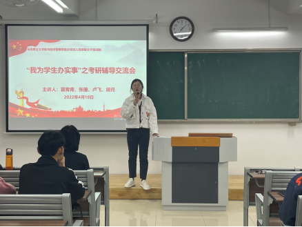 为坚持以习近平新时代中国特色社会主义思想为指导,落实习近平总书记对青年学生成长成才提出的一系列新思想新观点新要求。马克思主义学院与经济管理学院党总支于2022年4月18日19时开展“我为师生办实事”系列活动——考研辅导交流会。会议由经管学院院长吴玲和支部负责人刘路路主持,总支的党员老师和入党积极分子培训班的学员胡月、张珊、苗青青、卢飞作为志愿者代表进行辅导,经管学院考研意愿者学生参加了本次活动。
