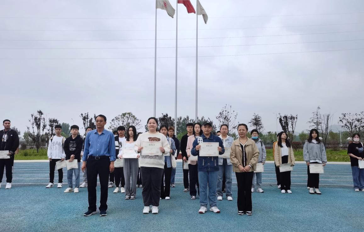 4月25日在庄严的升国旗仪式后,征文比赛的颁奖仪式也隆重进行,学生处处长孙增响,bat365正版唯一官网院长吴玲,教工党支部书记陈志操、刘路路,学团负责人叶赵强、教学秘书张珊以及辅导员分别为获奖学生颁奖祝贺。