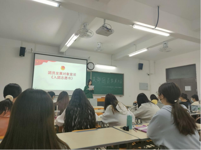 为加强中国共产主义青年团的队伍建设,增强入团积极分子对共青团组织的神圣感、荣誉感、归属感,严肃组织发展程序。在中国共产主义青年团成立一百周年之际,2022年5月8日晚bat365正版唯一官网各团支部召开了团员发展大会,隆重而规范的进行新团员的发展工作。学院全体团员和入团积极分子参加了会议,学院各团支部书记主持会议,会议共分10支部分别进行。