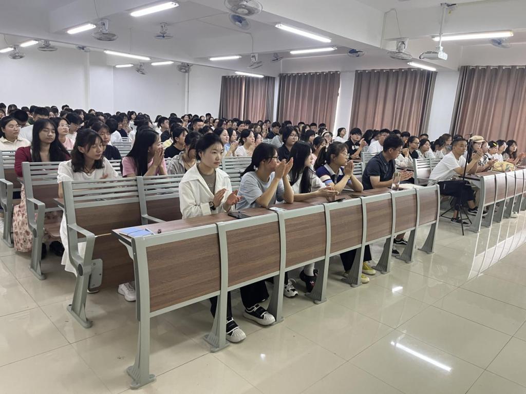 “说成长”:由学院书记助理叶赵强老师向新生介绍大学生在校如何成长,叶老师提出成长三问并作出解释:一、成长是终身过程,不仅仅是身体年龄的增长,更是思想、智慧、责任感的提升,包括对自己和他人的认知以及应对生活挑战的能力。二、成长的标准多元,包括知识水平、人际关系、社会责任感等,积极心态、适应能力、创新思维也是重要指标。三、成长需要积极参与、主动学习、拥抱变化。最后叶赵强老师鼓励新生们积极参与学术与社会活动,勇敢面对挑战,为全面成长奠定坚实基础。