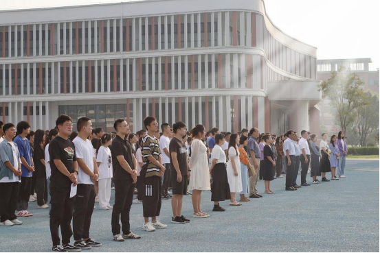 每周的七点十分,升旗仪式正式开始。随着仪仗队的出现,全体师生肃然起敬,在全体师生共同注视下,英姿飒爽的国旗护卫队队员们,护送鲜艳的五星红旗进场,当国歌奏响,五星红旗迎着朝阳冉冉升起,全体师生庄严肃立,目光都聚集在五星红旗之上,伴随着国歌的结束,国旗也升到了旗顶,飘扬在高空中。
