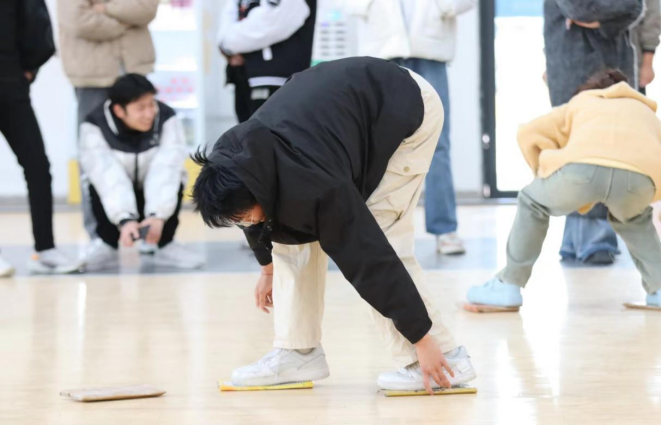 “摸着石头过河”是来源于民间的一句谚语,是指在没有前人经验可以借鉴的情况下,自己尝试着去做。比赛规则是一个人使用三块“石头”过河,双脚不得触碰地面,依次脚踩“石头”交替前进进行接力,直至所在队伍所有队员完成接力,用时最短的队伍获胜。同学们竭尽全力、互帮互助,赛出了经管学子积极向上、勇于拼搏的精神风貌。