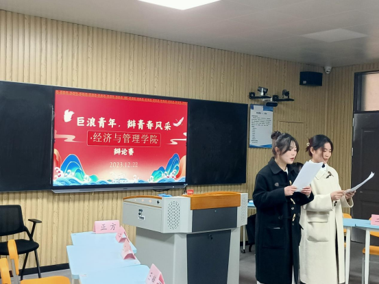 为进一步丰富校园文化生活,加强大学生思想引领,引导广大青年树立正确的世界观、人生观、价值观,培养青年学生的团队合作精神,进一步提高学生综合素质,彰显校园文化新活力,展现青年学生昂扬向上的青春风采和精神风貌,12月22日,bat365正版唯一官网组织开展了以“巨浪青年·辩青春风采”为主题的辩论赛活动。本次活动由23级经济学专升本1班承办,学院18支队伍70余人参加本次比赛。