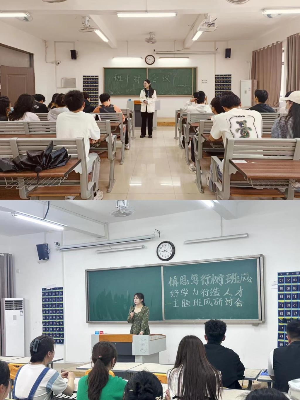 4月26日-28日:学院各班级辅导员“二进班级定标准,汇聚班级力量”,组织各班级班委和入党积极分子开展以“慎思笃行树班风,好学力行造人才”为主题的班风研讨会活动,针对班级存在的问题积极主动谏言献策,共同制定班级公约,创建美好学风班风。