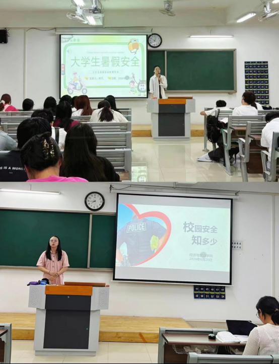 班会伊始,辅导员向大家讲述了近年来发生在假期期间的一些安全事故,如溺水、触电、交通事故等,警示同学们要高度重视假期安全。随后,针对假期期间可能存在的安全隐患,辅导员提出以下几个需要注意的方面:一是防电诈、传销。各辅导员强调随着暑假临近,电信诈骗和传销活动有所增加,提醒同学们要提高警惕,避免接听陌生电话和轻信不明来历的信息,保护自身财产安全。二是交通安全,提醒同学们遵守交通规则,注意出行安全。三是求职安全,教育学生警惕各种以找工作为名的诈骗行为,提高自我保护意识。此外,辅导员指出,为切实消除各种不安全因素,同学们放假前要遵守校规校纪,不酗酒、不寻衅滋事,严禁在宿舍内使用电饭锅、热得快等违规电器,严防火灾、盗窃等事故发生。