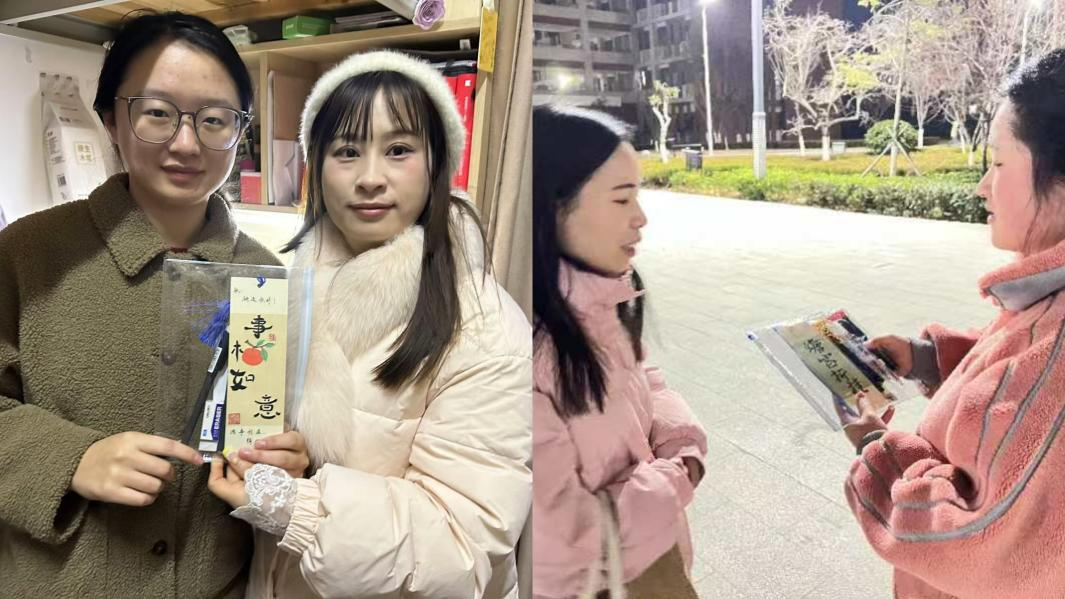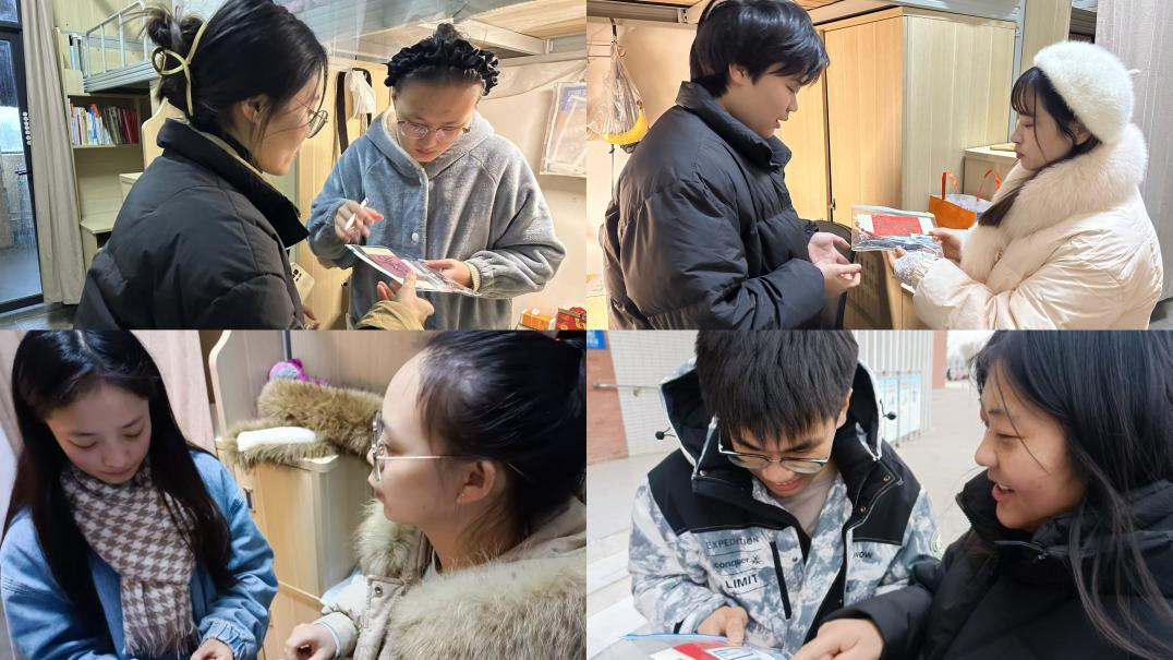 活动现场,辅导员们将精心准备的暖心包一一送到考研学子手中,这些暖心包内容丰富实用,不仅包含了考试必备的文具用品,更有在校学弟学妹们亲手制作的精美书签。书签上,一笔一划皆为对学长学姐们的真挚祝福与鼓励,传递着学院大家庭的温暖与力量。无论是在宿舍还是自习室,都能看到辅导员们忙碌而又温馨的身影,他们用实际行动为考研学子们保驾护航。