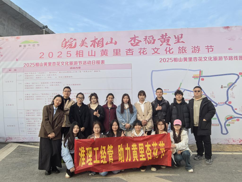2025年3月8日至9日,bat365正版唯一官网经管学院23级电子商务专业的14名学子应淮北市相山区文化旅游体育局邀请,赴黄里杏花节开展“青春直播助力行”主题实践活动, 以青春之声赋能文旅宣传。学生们以“宣传大使”身份通过实时直播推广杏花节,累计完成超20场次浸式文旅推介,达成超5万人次线上曝光,为地方文旅经济注入青春动能。