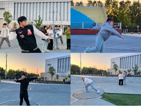 铅球场上,运动员屏息凝神、全力以赴,爆发力瞬间释放,铅球划破长空、重重落地,展现出经管学子的力量与气魄。