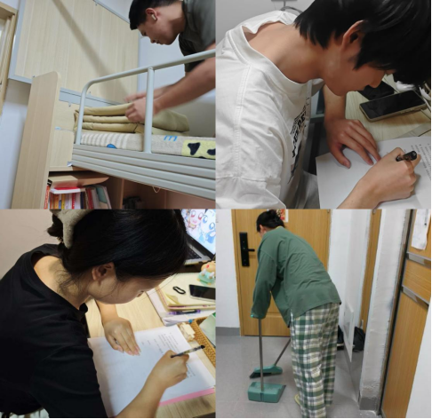 全体辅导员携党员、入党积极分子构成的“宿舍焕新导师团”二进宿舍,通过“书桌收纳”、“床铺整理”等场景亲身示范内务整理技巧。全院50余间宿舍开展“健康承诺书”签订。同步启动“三勤打卡挑战赛”,近300名学生通过小程序上传整理书桌、地面清洁等实景照片,形成“比学赶超”的良好氛围。