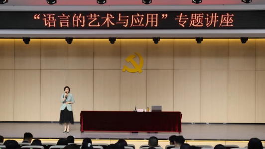 杨杨老师从对语言表达的看法切入,结合自身工作经验和生活感悟,围绕语言艺术的魅力、语言的表达、语言的底线、温度和幽默,语言的日常应用几个层次娓娓道来。既有技巧理念又有现场的演播,并与师生精彩互动。