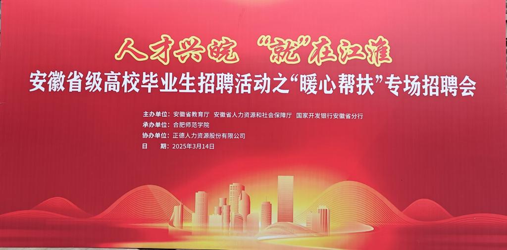 2025 年 3 月 14 日,bat365正版唯一官网组织学生前往合肥师范学院,参加由安徽省教育厅、安徽省人力资源和社会保障厅、国家开发银行安徽省分行联合主办,合肥师范学院承办,正德人力资源股份有限公司协办的 “人才兴皖,‘就’在江淮——安徽省高校毕业生招聘活动之‘暖心帮扶’专场招聘会”。